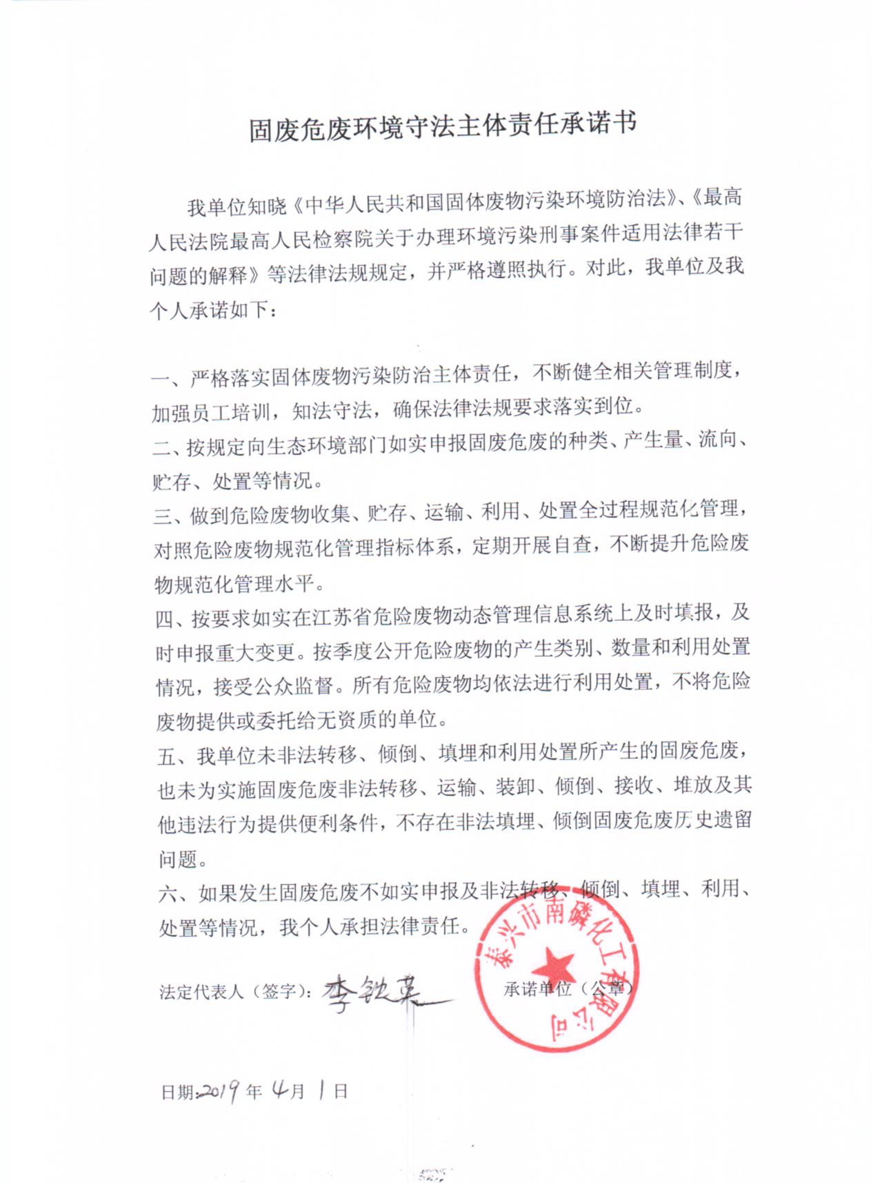 | 環評報告批復文件 | 關于泰興市南磷化工有限公司危廢倉庫建設項目環境影響報告表的批復 | 泰興市行政審批局 | 泰行審批(泰興)【2020】20256號 | 需要者依申請提供掃描件。 |